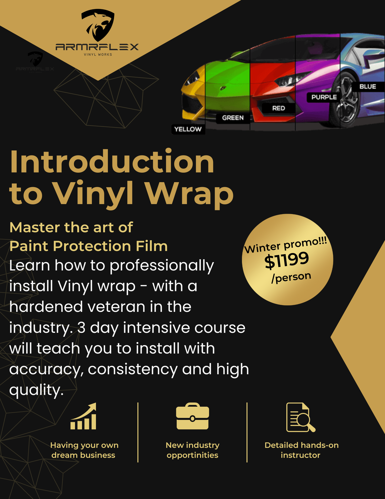 Learn from industry leading instructors to vinyl wrap fast, accurately and with quality. This class is designed for beginners who are looking to learn the basics of car wrapping. You will learn about the different materials, tools, and techniques used in the vinyl wrap process. You will also have hands-on experience practicing the techniques on various surfaces, so you can leave confident in your new skills. Whether you're looking to wrap your own car, or start a wrapping business, this class is perfect for those with no prior experience.